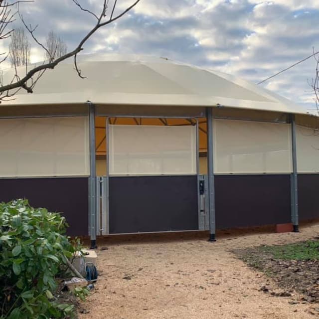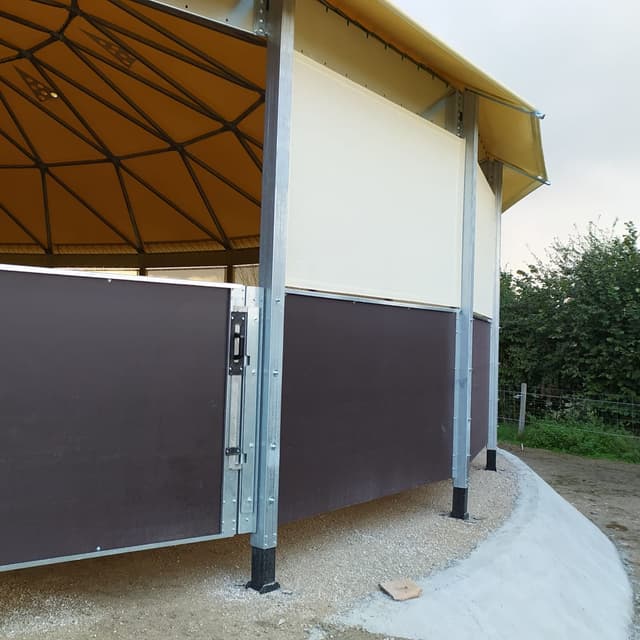 The windproof net protects the inside of the horse walker from drafts allowing the horse to stay focused during training.